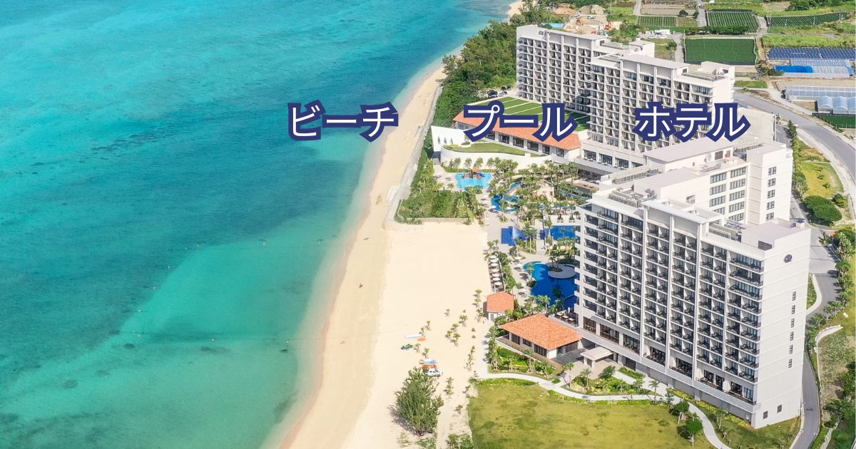 沖縄を代表する北部エリアのホテルの多くは、海岸線に沿って走る国道や県道を挟んで、ホテルとビーチが分かれている構造が一般的です。