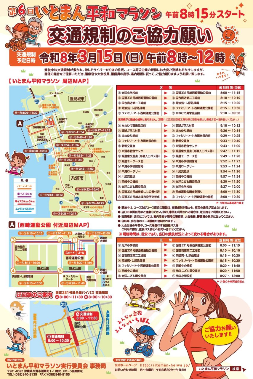 3月15日(日) 「いとまん平和マラソン」開催に伴う交通規制のご案内