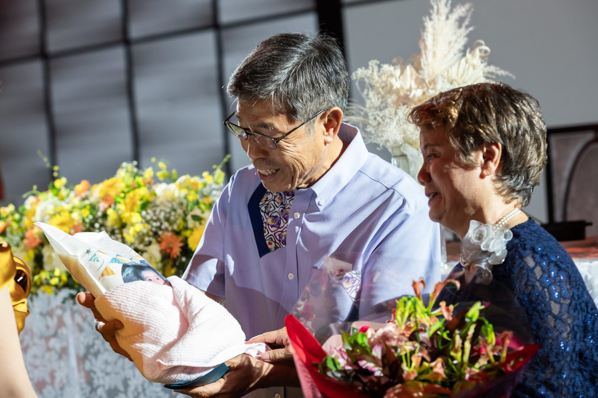 ケーキが苦手なので、代替えしたいという要望に、料理担当の方とたくさん相談してもらいながらパンタワーという形にしていただきました。サプライズで私の大好きなミッフィも入れていただきすごく嬉しく、印象に残っています。 また料理もとても美味しく、オープンキッチンだったので家族がとても喜んでいました。沖縄の結婚式ではコース料理はあまりメジャーではないので参列者みんな喜んでいました。私も合間を見てたくさんいただきました、! キャンドルサービスも、沖縄でよくみるメジャーなものは新郎がキャンドルを持ち新婦はブーケを持ってついていくスタイルだと思いますが、ブーケを預かっていただき一緒にキャンドルサービスができたのもすごくうれしかったです。 また、挙式ができない代わりに写真撮影をたくさんしていただきました。ドレスや小物もたくさん撮っていただけて嬉しかったです。 本当に何度も写真動画を見返すくらい、大満足の披露宴でした。ありがとうございました。